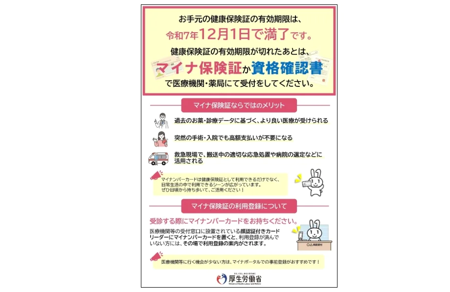 令和7年12月2日より従来の健康保険証がご利用いただけなくなります。